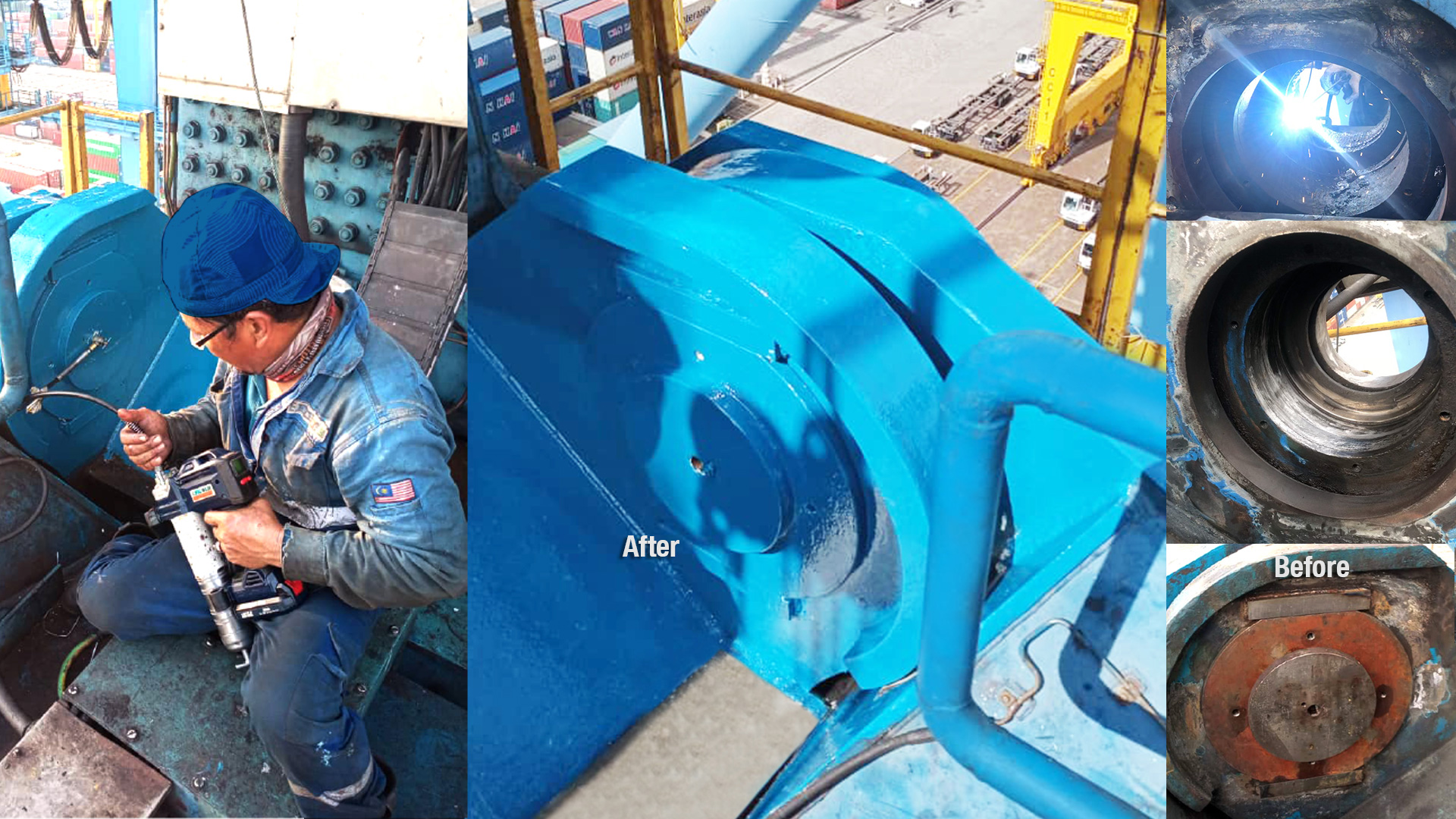 Boom Pin replacement for port ship to shore cranes